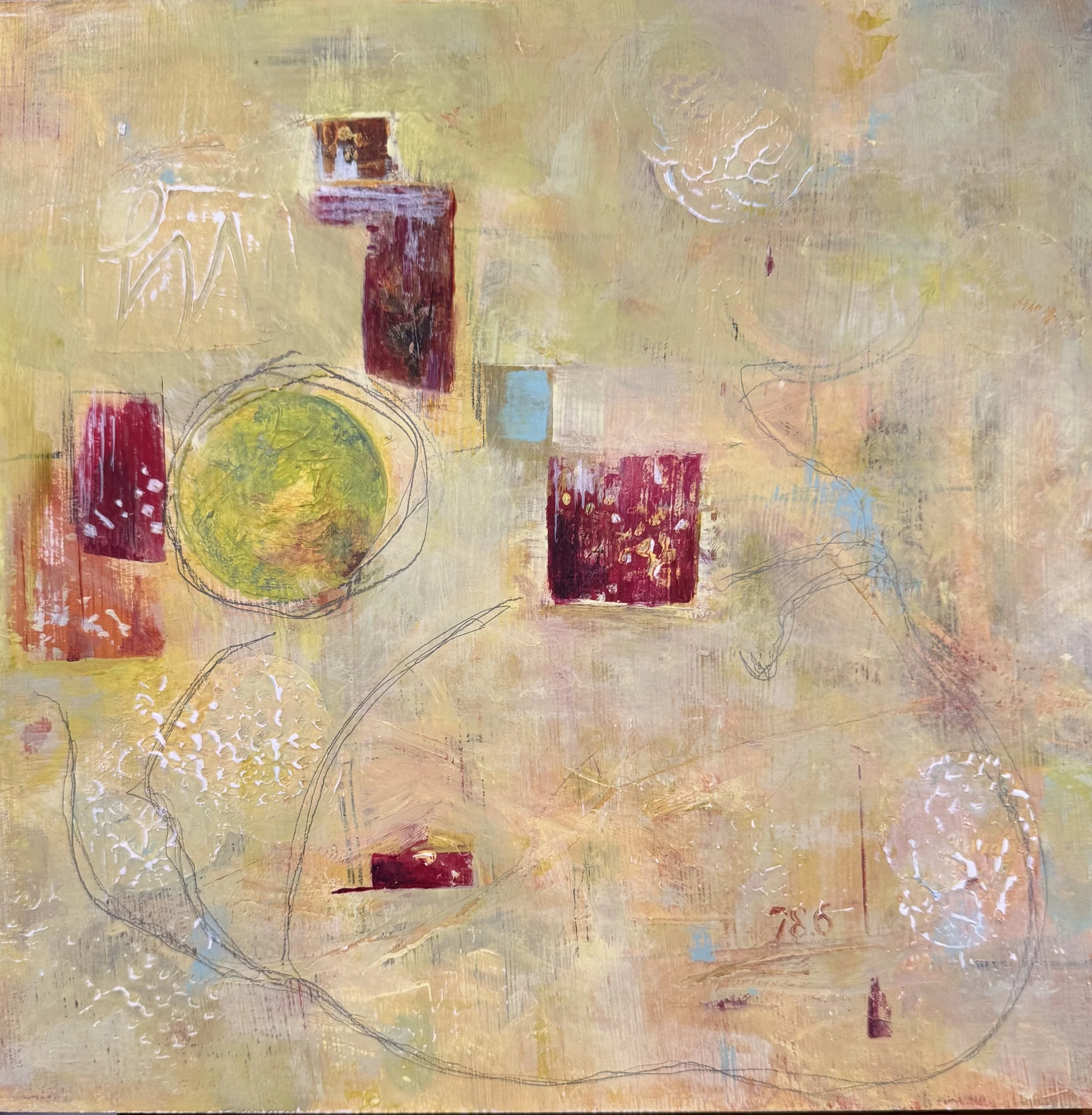 Rooted in abundance and harmony, “Awaking Harmony. 786” abstract piece invites the viewer into a moment of stillness and reflection. With layered textures and a warm, earthy palette, the composition creates a space for contemplation—an open invitation to pause, breathe, and simply be. The interplay of organic forms and structured elements reflects the delicate balance between presence and possibility, echoing the artist’s deep desire to "hold space" for others through her work.