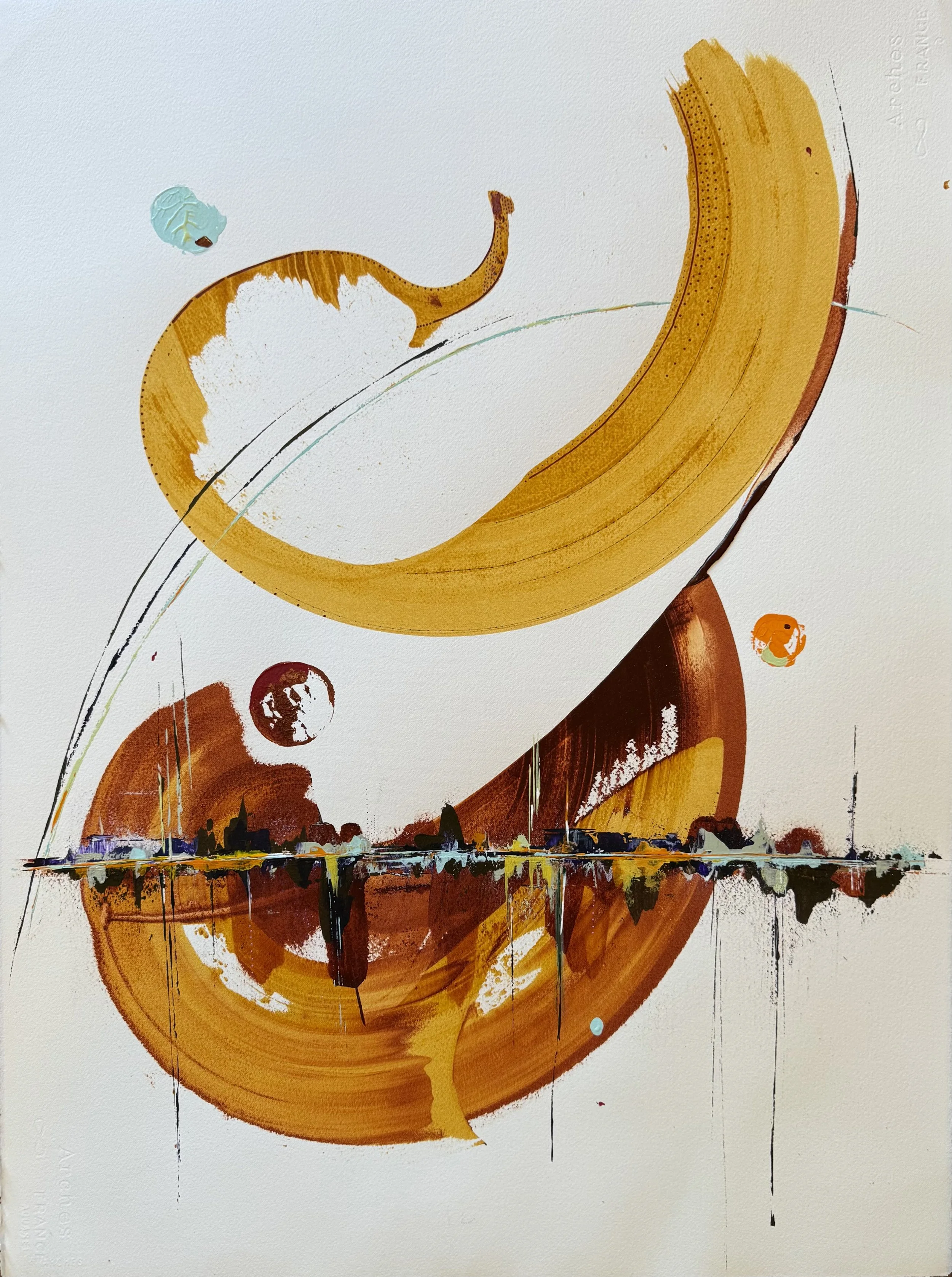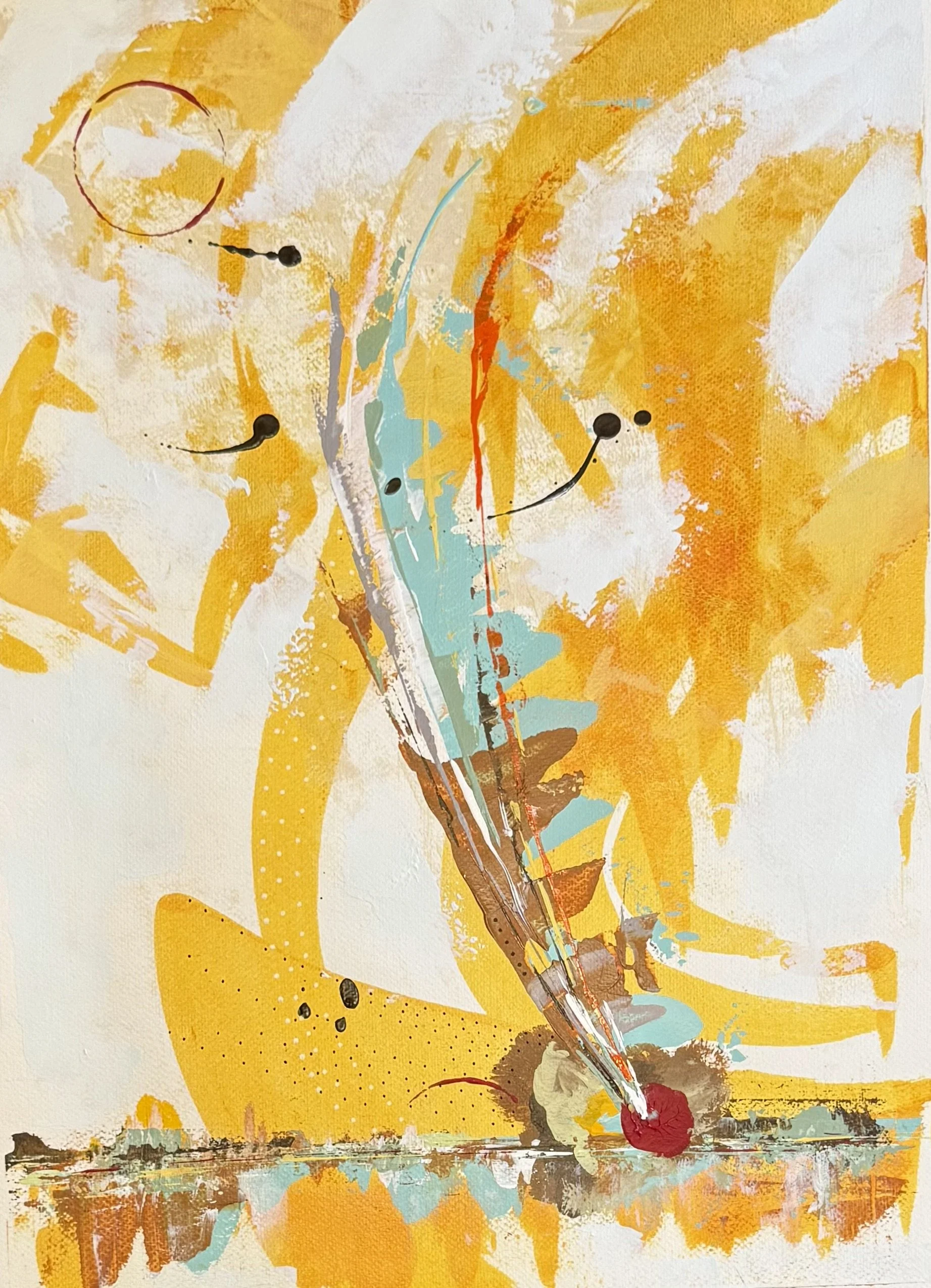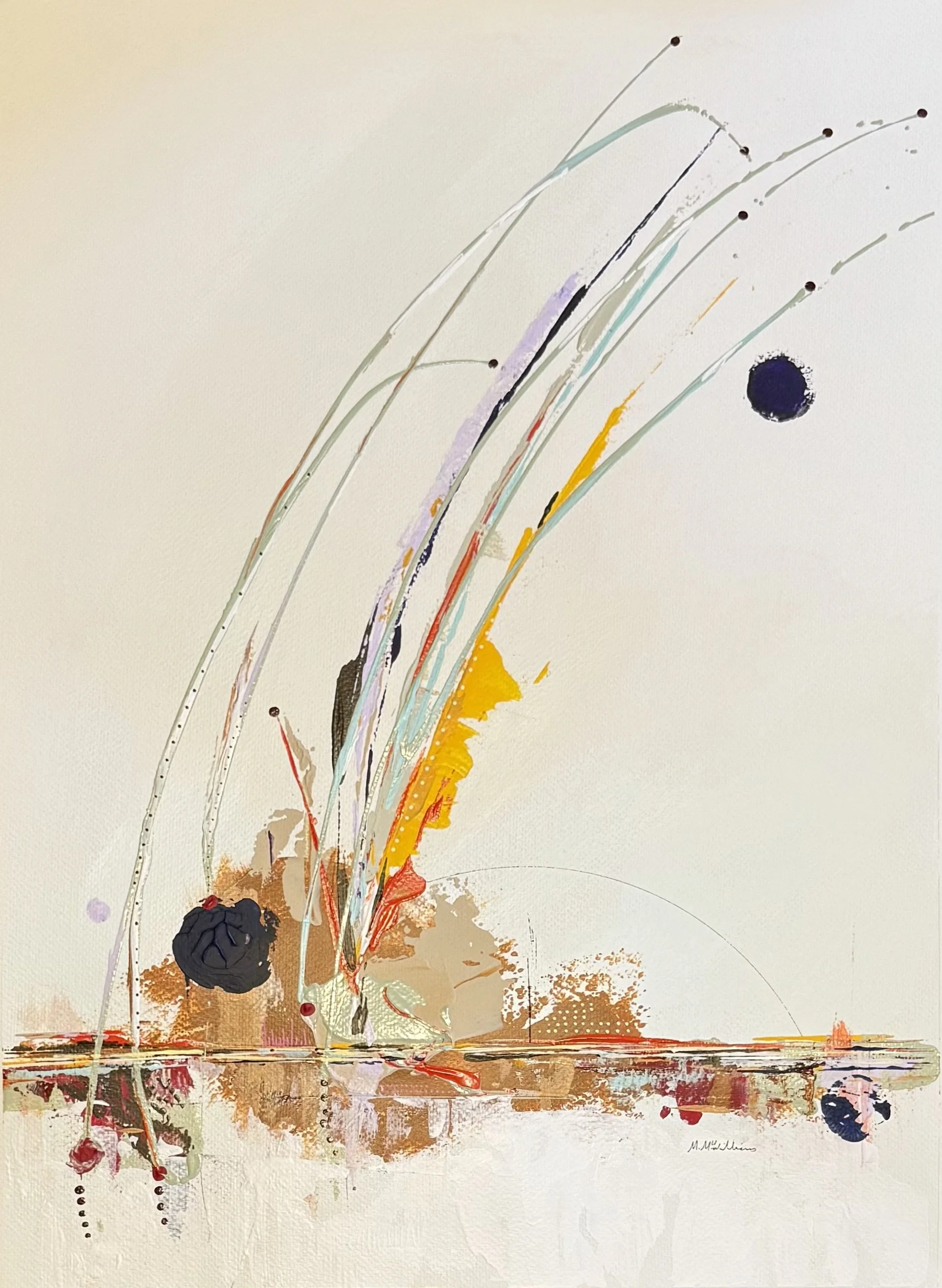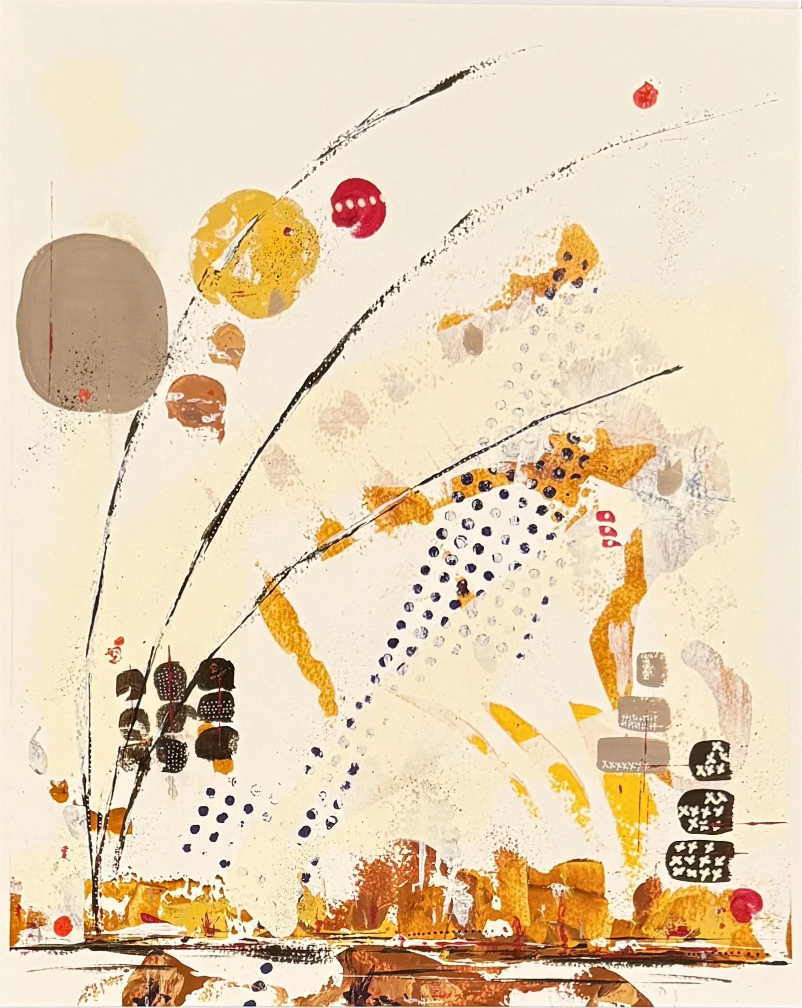 Shel explores the vast, mysterious, and beautiful landscapes of New Mexico translated into abstraction through gesture and rhythm. She uses a natural palette on cold press paper that invites viewers into a space where rich tones and organic forms evoke space and humanity. These paintings are whimsical and free, allowing viewers to discover their own place and relationship with nature and their connection to humanity.